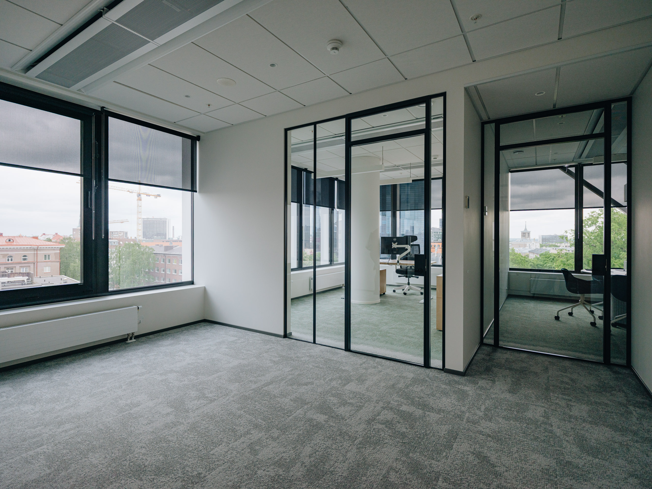 Büroo on välja ehitatud ning hõlmab nelja kabinetti, koosolekuruumi, kahte kõneruumi, kahte tualettruumi ja kööginurka.